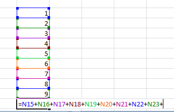 Entering commas or return selects a cell.